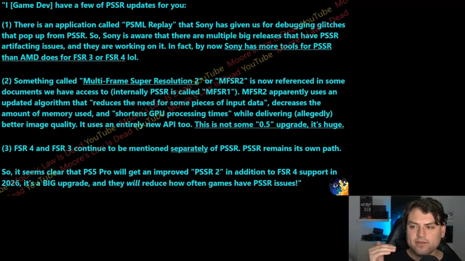 Le informazioni provengono da un game developer citato da Moore’s Law is Dead nel suo ultimo video. Lo sviluppatore afferma che Sony è consapevole dei glitch visivi dell’attuale PSSR sulla PS5 Pro e ha già fornito agli studi un’app di debug dedicata per aiutare a mitigare questi difetti nelle versioni attuali dei giochi.