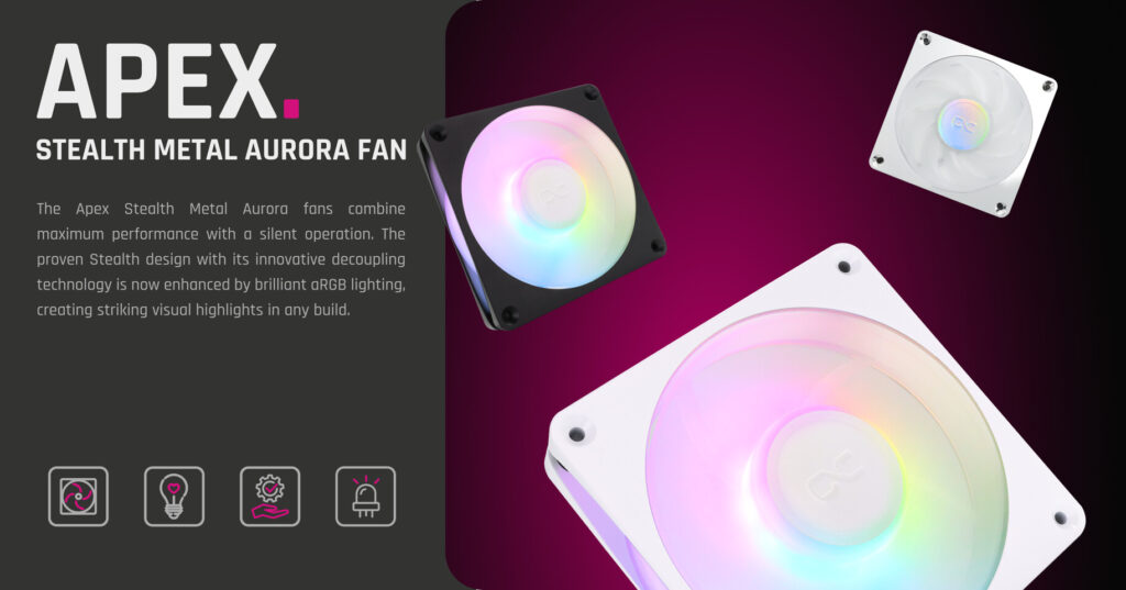 Alphacool International GmbH, azienda tedesca con sede a Braunschweig e oltre 20 anni di esperienza nel settore del raffreddamento a liquido per PC, amplia la propria gamma con l’arrivo delle nuove ventole Apex Stealth Metal Aurora.