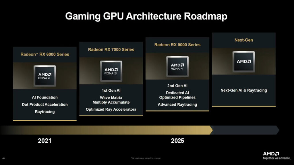 Nonostante le aspettative, AMD non ha ufficializzato il nome della sua prossima architettura grafica. I riferimenti a “RDNA 5” o “UDNA” restano al momento speculativi, e sembra che la stessa azienda non abbia ancora scelto la denominazione definitiva. La strategia è quella di mantenere l’attenzione su RDNA 4, evitando di anticipare troppo le novità future.
