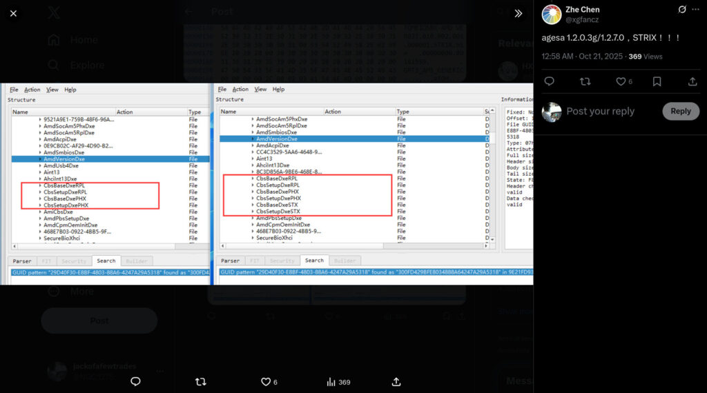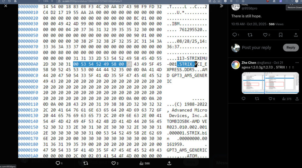 Il leaker @9550pro ha individuato un riferimento a Strix Point all’interno del codice del recente aggiornamento AGESA 1.2.7.0, mentre un ulteriore riscontro arriva da @xgfancz, che ha notato la presenza della sigla “STX” (presumibilmente Strix Point) accanto a “PHX” (Phoenix Point) nella lista delle architetture supportate dal firmware.