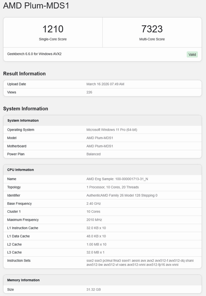 Un nuovo leak emerso su Geekbench ha rivelato l’esistenza di un processore AMD ancora non annunciato, identificato dal codice OPN 100-000001713-31.