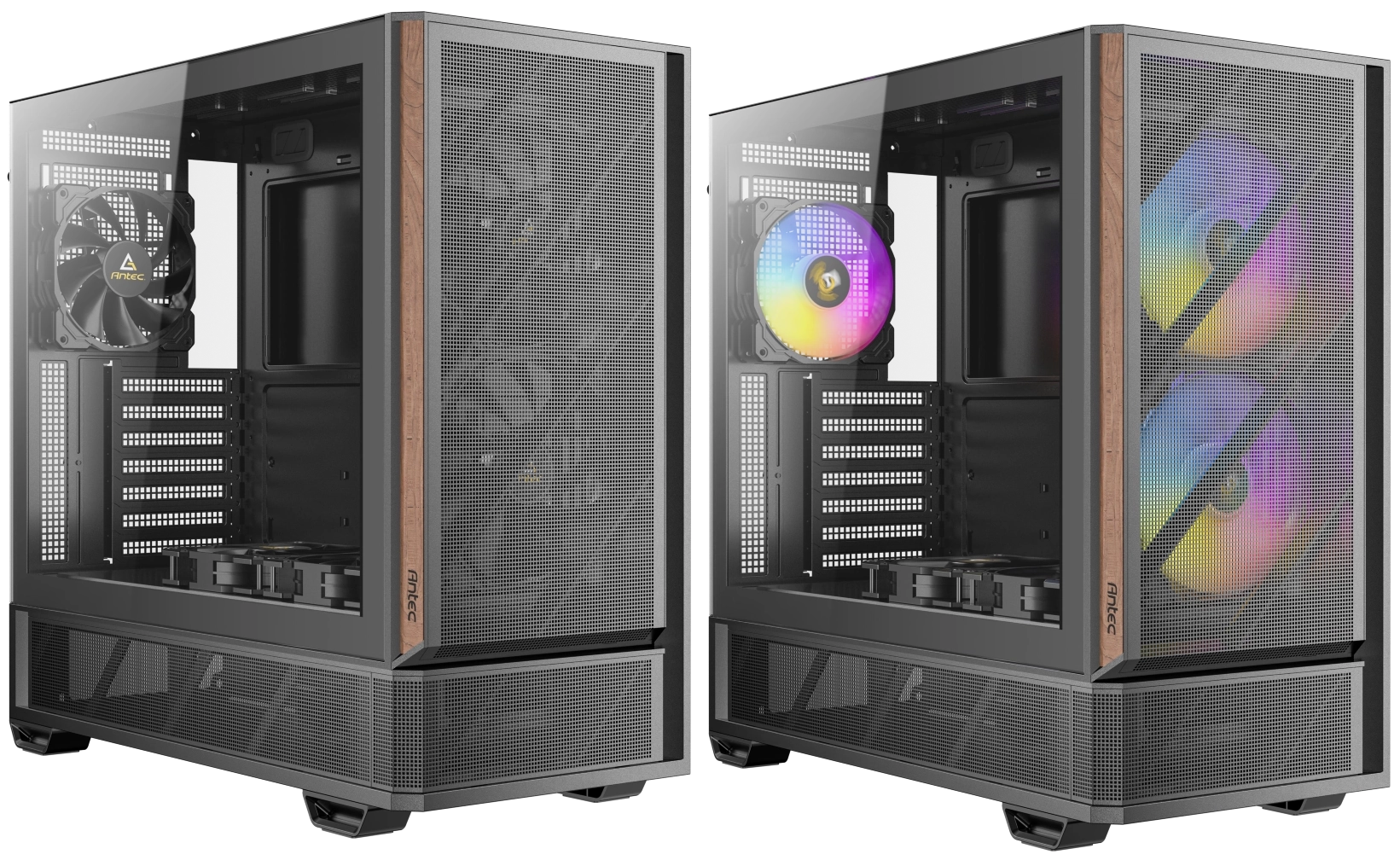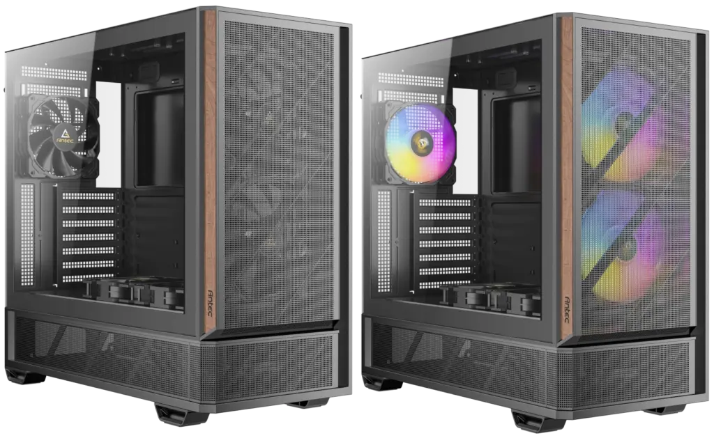 Entrambi i case supportano radiatori per raffreddamento a liquido fino a 360 mm, offrendo così ampie possibilità di personalizzazione per sistemi ad alte prestazioni. Lo spazio interno è stato progettato per facilitare una gestione ordinata dei cavi, con canali dedicati sul retro del vassoio della scheda madre, contribuendo a mantenere il flusso d’aria libero da ostruzioni.