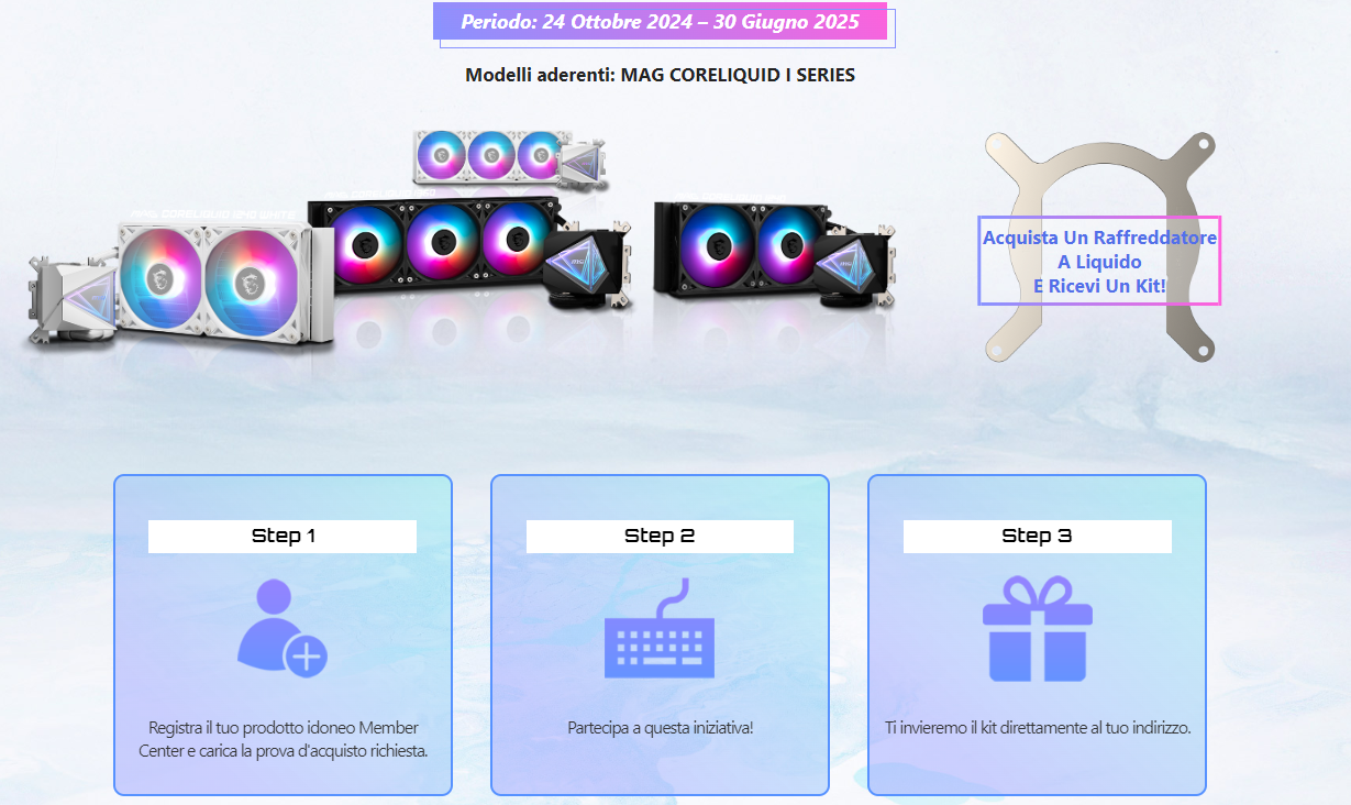 Acquistando MSI MAG CORELIQUID I SERIES, gli utenti potranno chiedere in regalo un kit LGA 1851 OFFSET KIT ENHANCER-I per potenziare le prestazioni di raffreddamento.