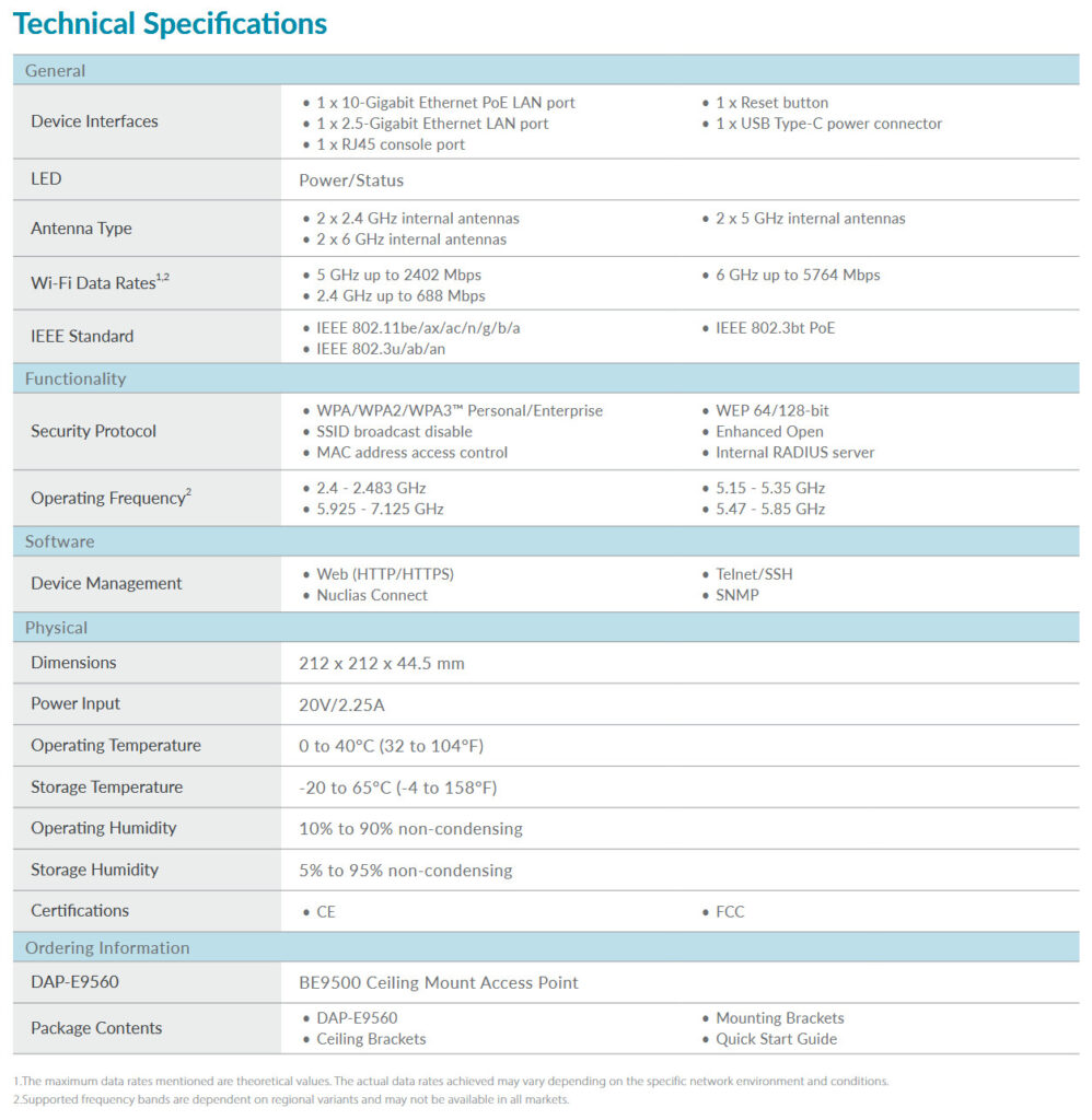 Il D-Link DAP-E9560 BE9500 Wi-Fi 7 Ceiling Mount Access Point è già disponibile attraverso la rete globale di distributori e rivenditori autorizzati D-Link.