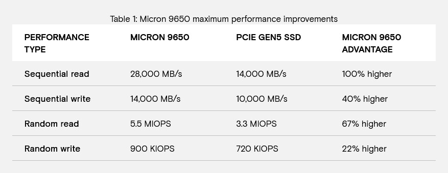 Il Micron 9650 raddoppia la banda sequenziale rispetto alle soluzioni PCIe Gen 5: