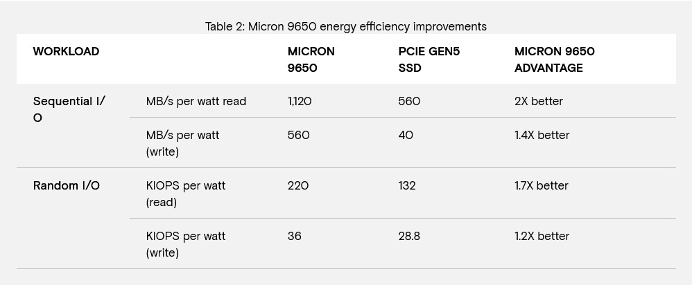 Uno degli aspetti chiave del nuovo SSD è l’efficienza energetica, fondamentale nei moderni data center ad alta densità.