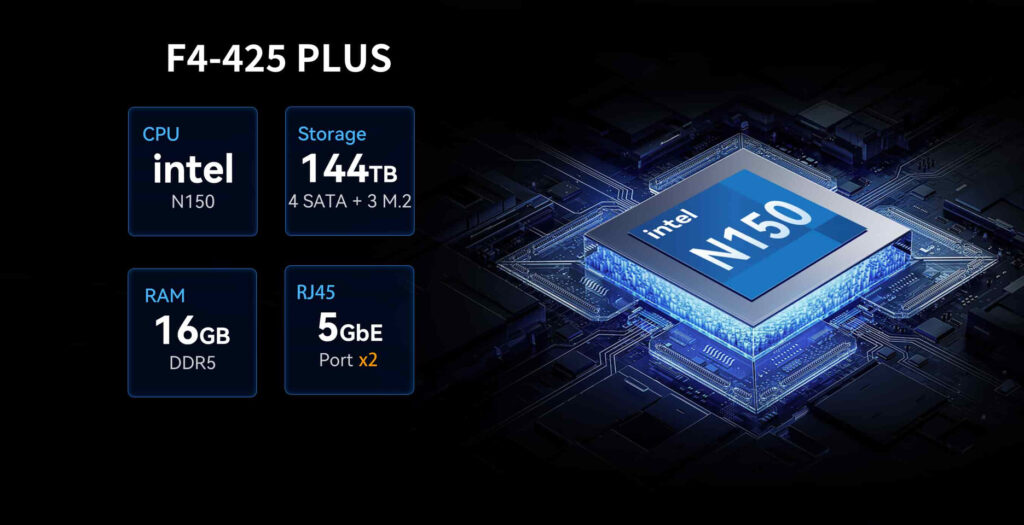 Entrambi i dispositivi integrano doppia rete 5 GbE, tre slot M.2 SSD, e capacità di archiviazione fino a 144 TB per il modello a quattro bay. Basati su processori Intel N150 quad-core (fino a 3,6 GHz) e memoria DDR5 da 16 GB/8 GB, raggiungono velocità di trasferimento fino a 1010 MB/s, garantendo potenza anche nei carichi più intensi.