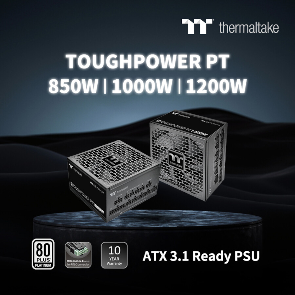 Thermaltake, marchio leader nel settore PC DIY e hardware premium, ha presentato la nuova serie di alimentatori Toughpower PT Platinum, disponibile nei modelli da 850 W, 1000 W e 1200 W.