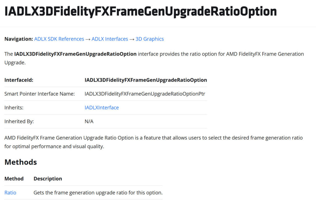 La scoperta arriva dall’analisi del codice dell’SDK, dove compare una nuova funzione denominata IADLX3DFidelityFXFrameGenUpgradeRatioOption.