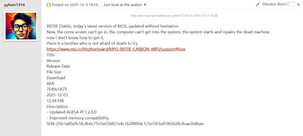 L’aggiornamento non risulta ancora distribuito in modo capillare. MSI è attualmente uno dei pochi produttori ad aver pubblicato BIOS ufficiali con riferimento esplicito ad AGESA PI v1.2.8.0 su alcuni modelli selezionati delle serie X870E e B850.