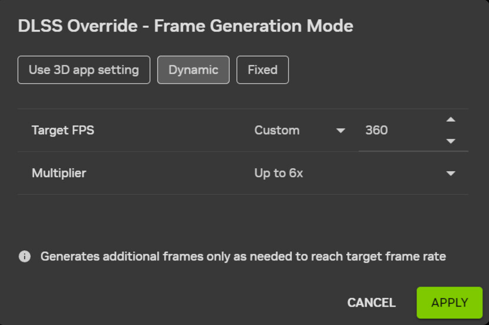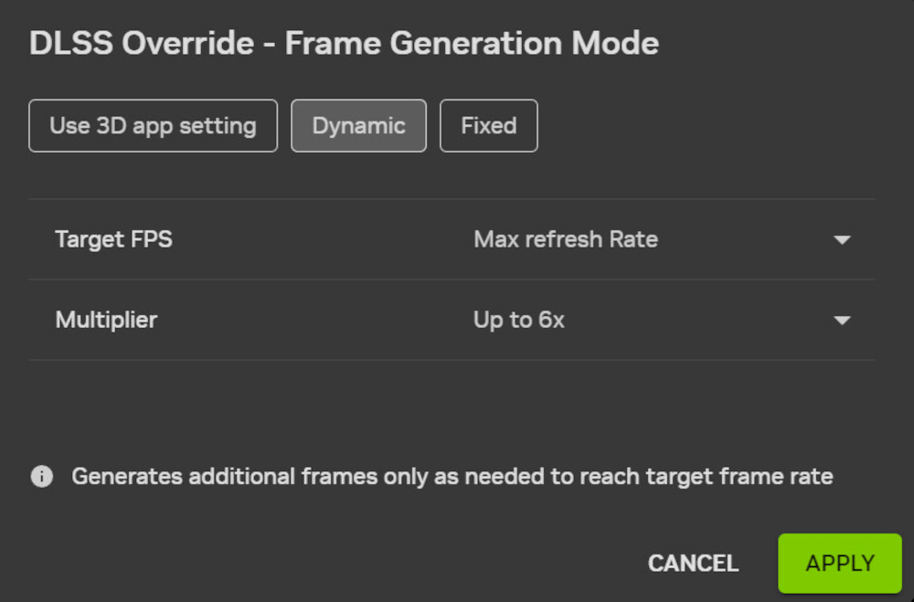 Accanto alla modalità 6x, NVIDIA introduce Dynamic MFG, un sistema intelligente che regola automaticamente il moltiplicatore di frame generation in base a: