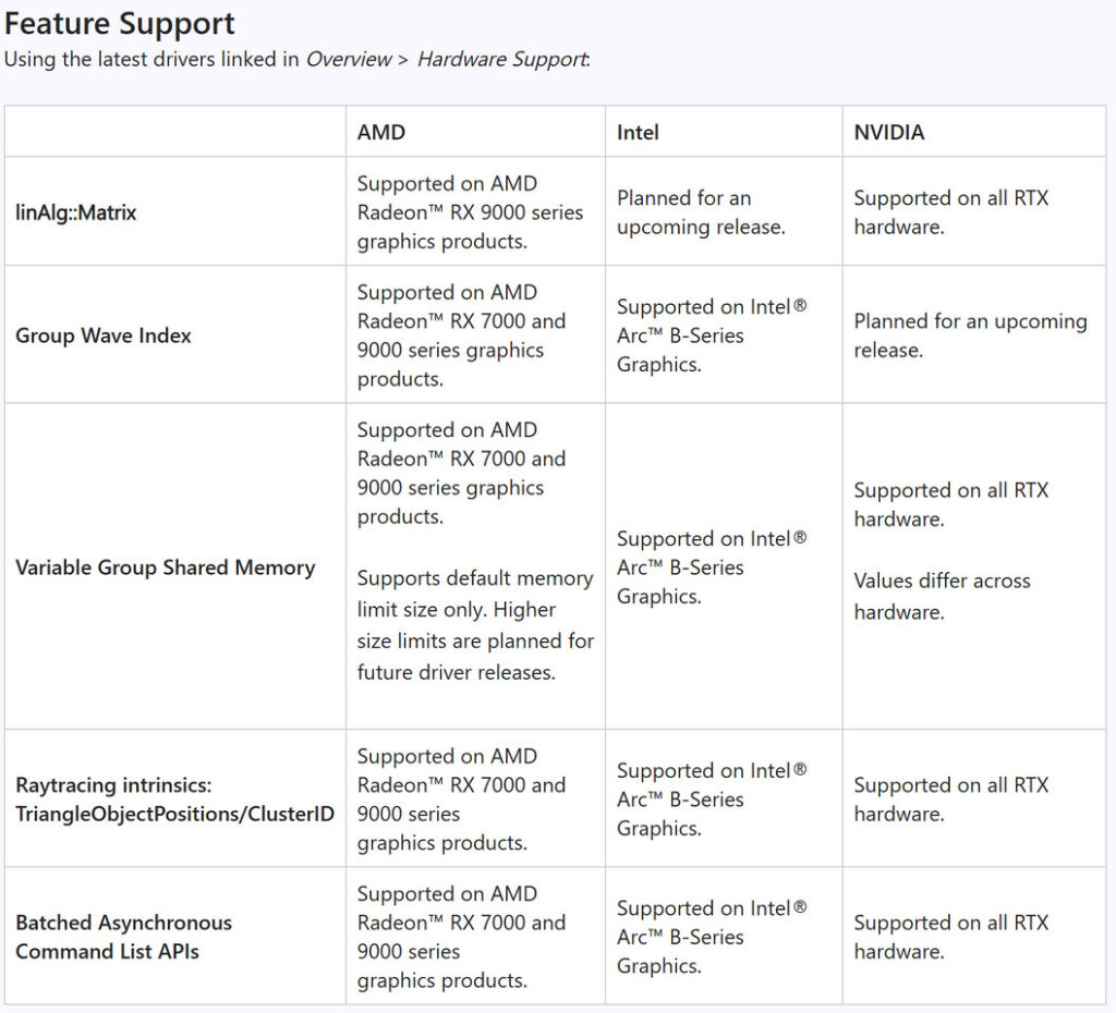 Oltre alla nuova API matriciale, il pacchetto include miglioramenti significativi all’ecosistema DirectX 12: