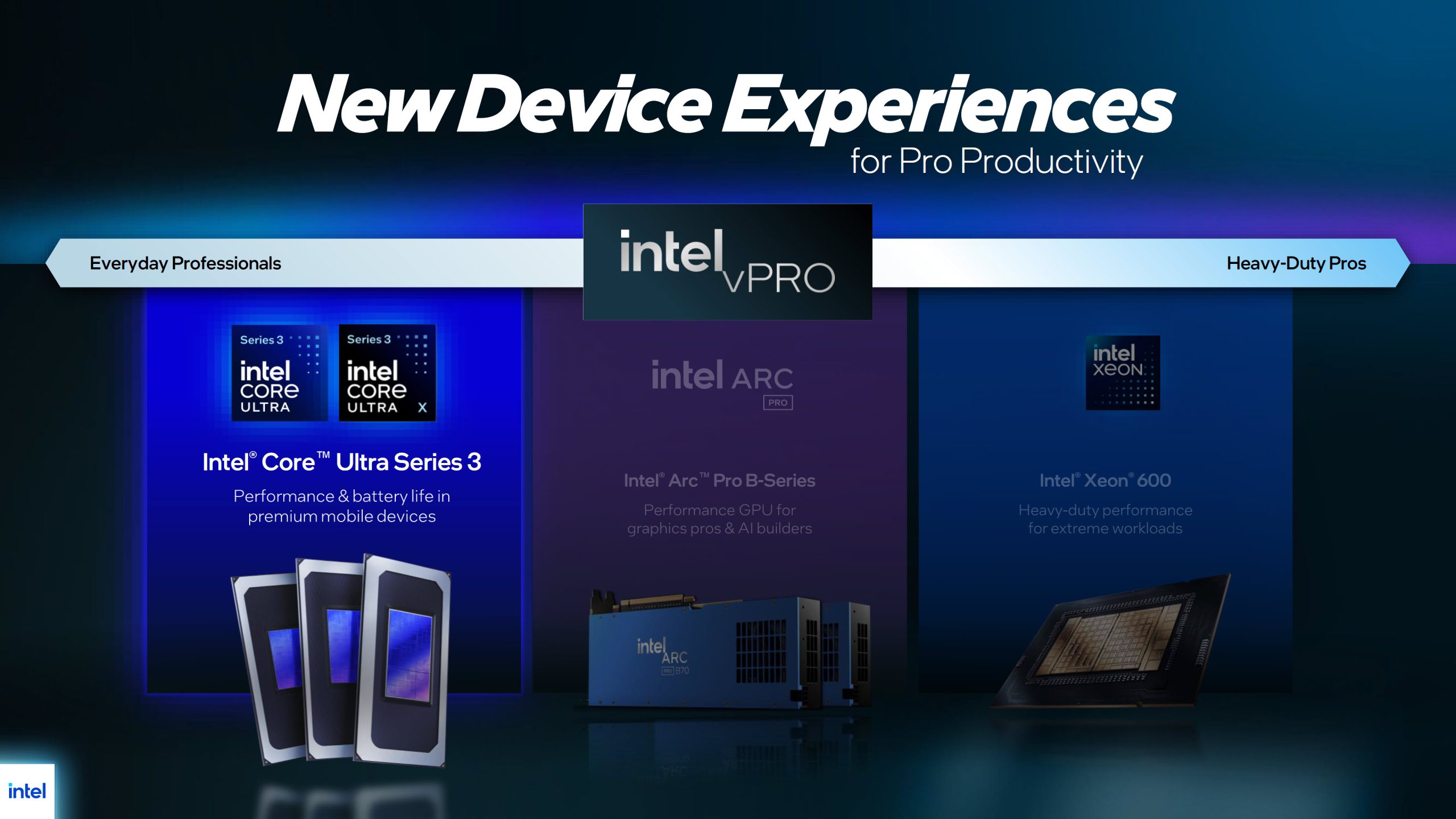 Intel ha annunciato i processori Core Ultra Series 3 vPro “Panther Lake”, progettati per notebook commerciali.