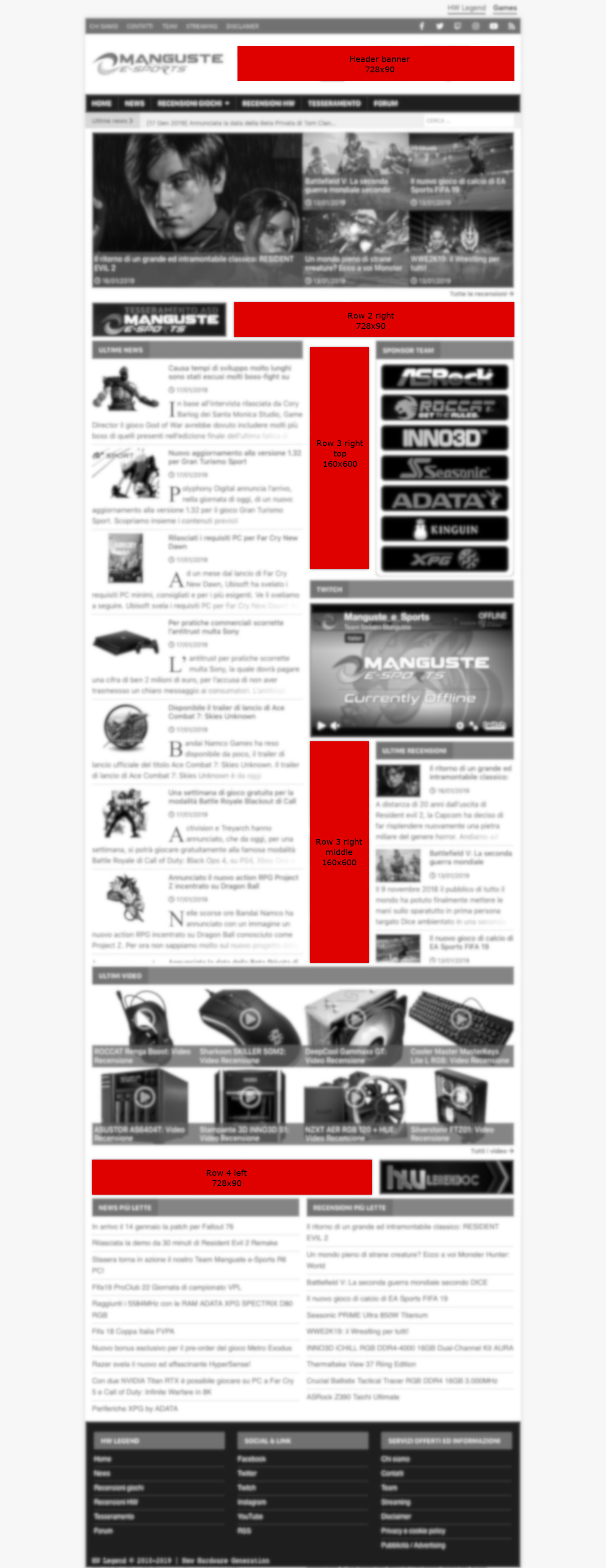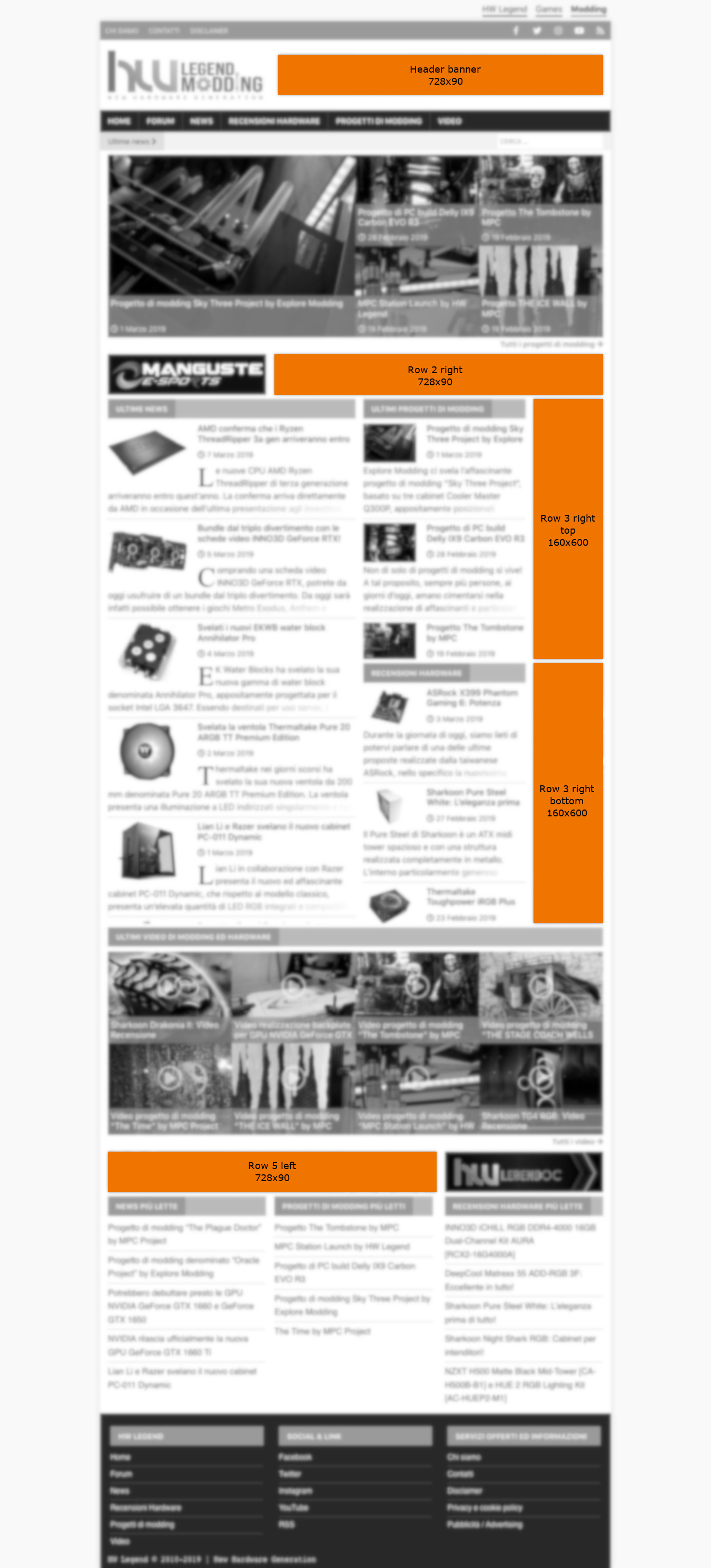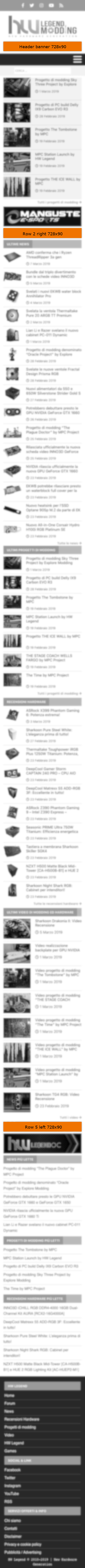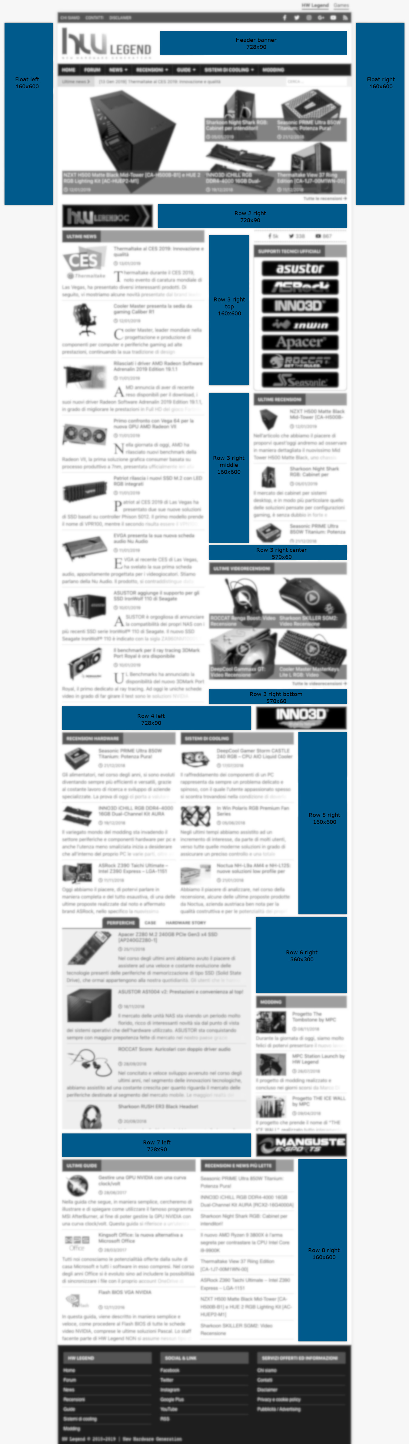 HW Legend offre diversi spazi pubblicitari che possono essere usati in relazione alle esigenze degli inserzionisti, del tipo di device usato dall’utente (che ne specializza in modo marcato l’esperienza di navigazione) e delle macro aree di contenuti, permettendo così di accedere a bacini di utenze molto eterogenei.