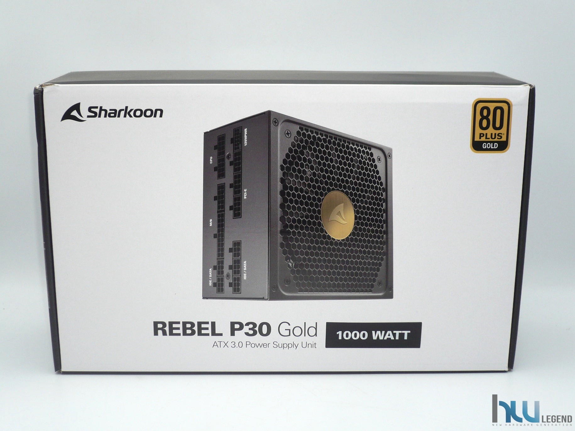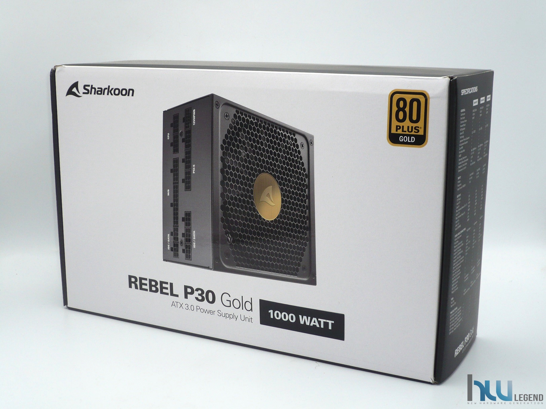 L’alimentatore che analizzeremo nel corso di questo articolo è un nuovissimo REBEL P30 Gold 1000W ATX 3.0, gentilmente fornitoci da Sharkoon. Il prodotto è giunto in redazione all’interno della confezione originale prevista dal noto produttore, esteticamente molto curata e sulla quale predomina una colorazione nera e bianca, tipica dei prodotti appartenenti alla gamma REBEL e rivolti ai videogiocatori più esigenti.