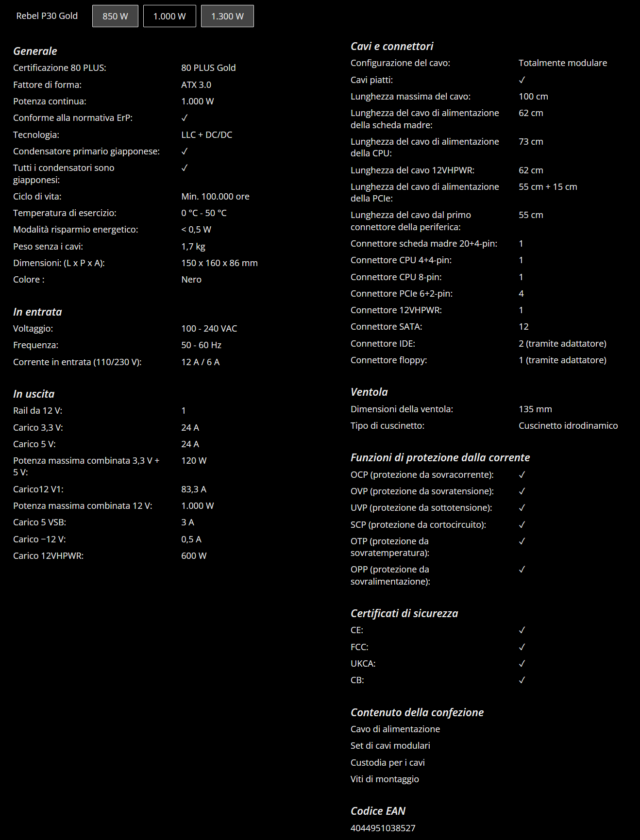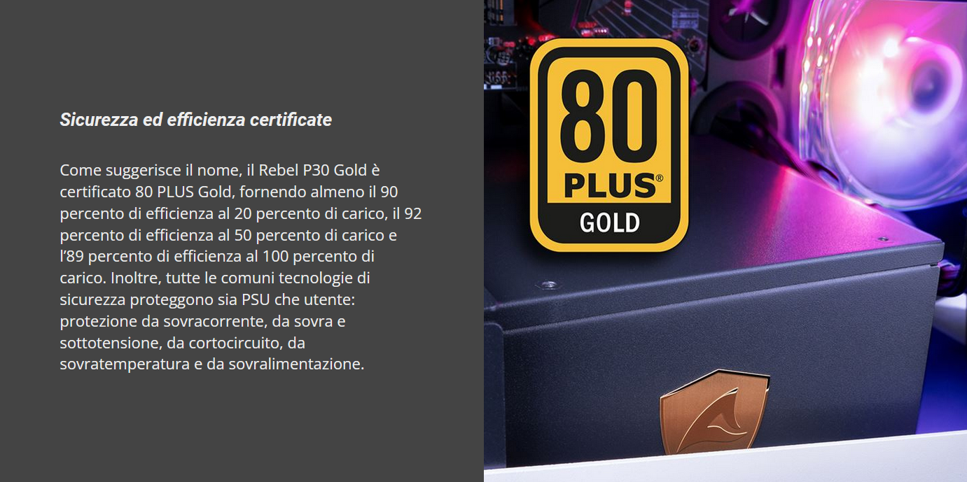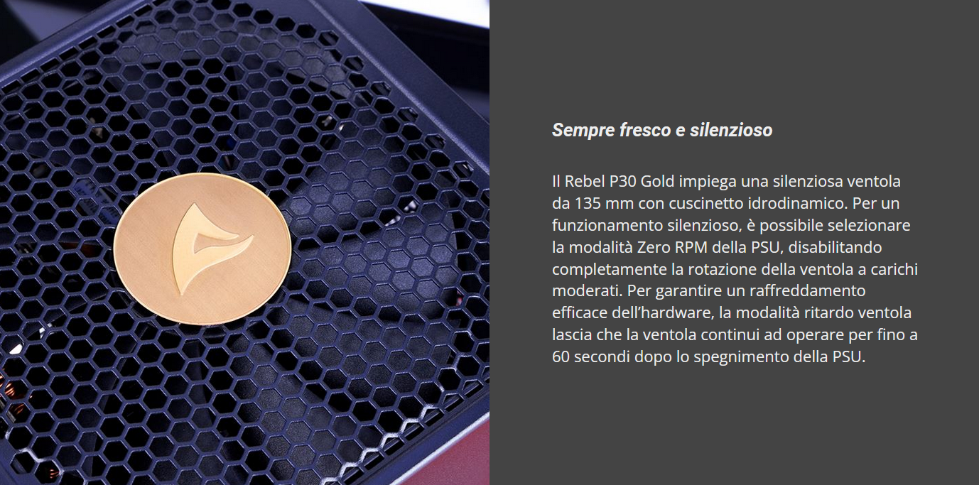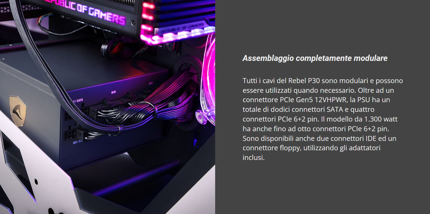 Raggruppiamo brevemente le features principali del REBEL P30 Gold 1000W ATX 3.0: