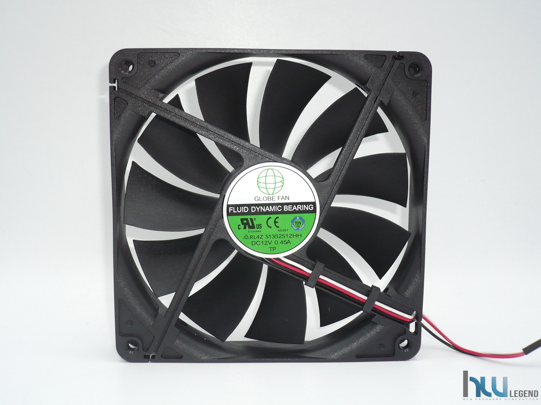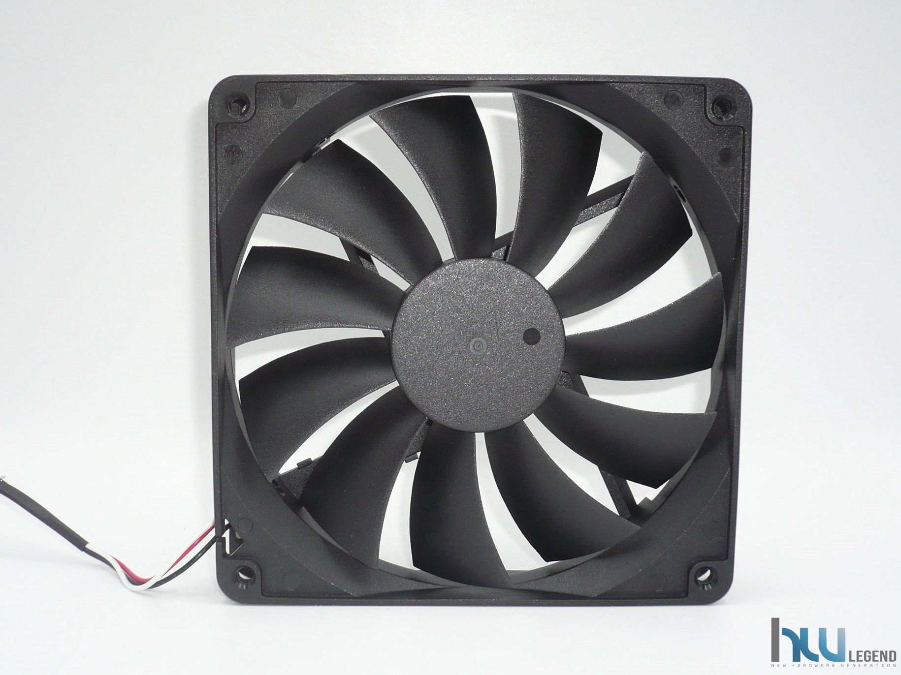 Il telaio della ventola è chiaramente in materiale plastico verniciato di nero, così come il corpo delle pale. Le dimensioni sono quelle classiche di 135x135x25mm. Le undici pale hanno un design semplice. La qualità costruttiva è indubbiamente di ottimo livello con una ridotta flessione sull’asse diagonale. La resistenza meccanica dei materiali è molto buona, caratteristica che si aggiunge alla già più che solida struttura generale. Sia le pale che la struttura di sostegno sono studiate per resistere al meglio ad una notevole pressione.