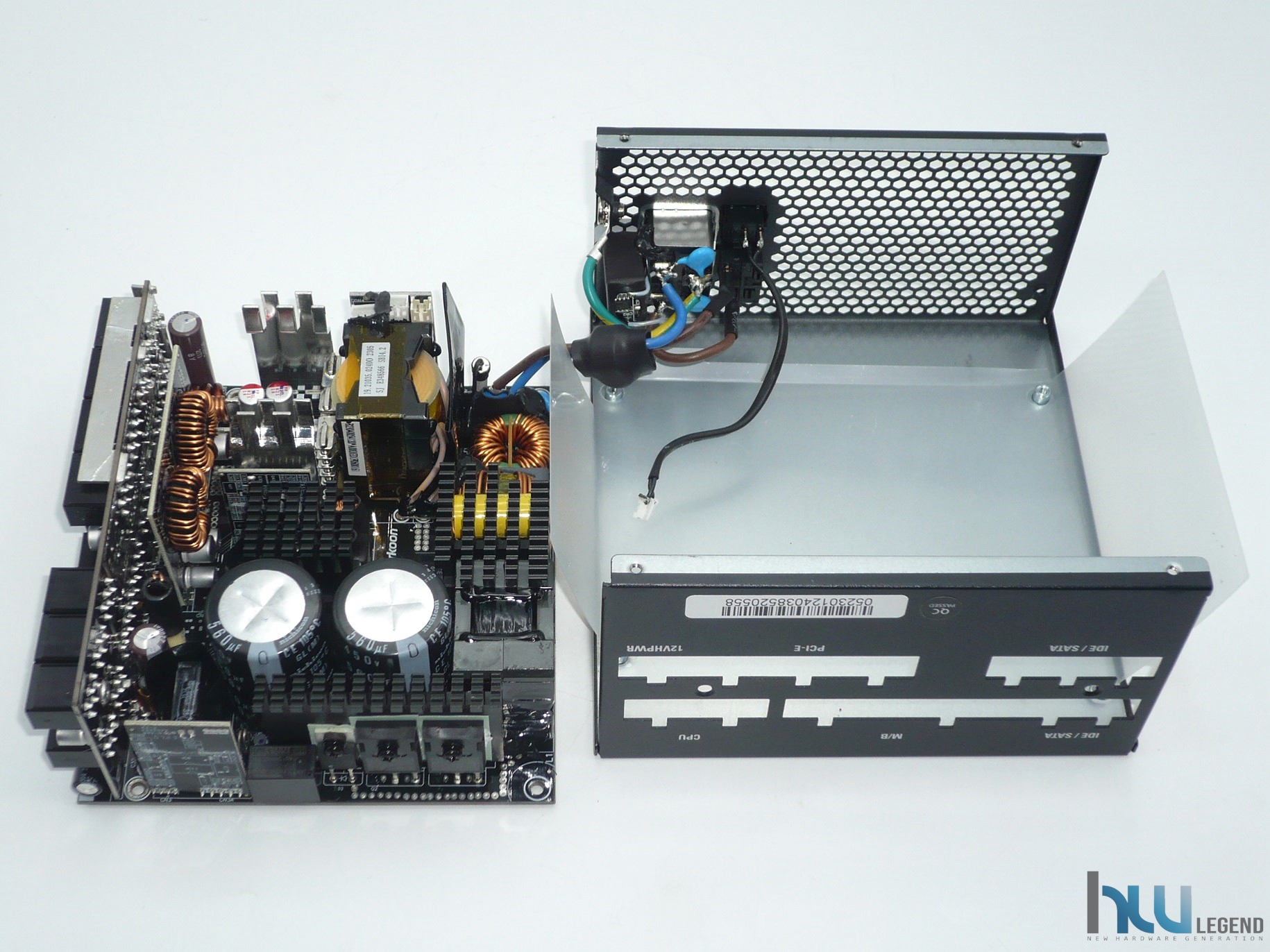 Dopo aver rimosso il sigillo e tolto le viti che mantengono fissate le parti di cui è composto il telaio, possiamo analizzare con attenzione gli elementi elettronici della PSU REBEL P30 Gold 1000W ATX 3.0. Per quanto riguarda la piattaforma OEM adottata, il produttore tedesco ha scelto di affidarsi ad uno degli ultimi progetti marchiati High Power Electronic.