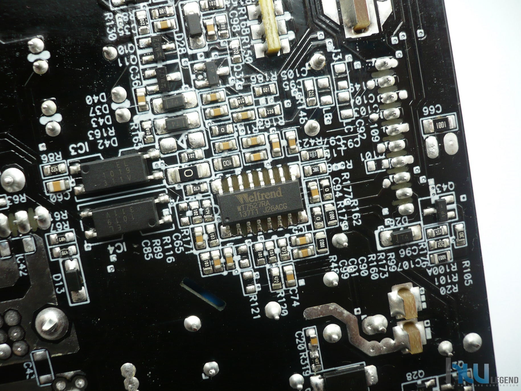 Per quanto riguarda il Supervisor IC la scelta è ricaduta su un affidabile prodotto marchiato Weltrend, precisamente un WT7527RA, responsabile di controllare tutte le tensioni in uscita, oltre chiaramente a tutti i controlli e protezioni da sovra assorbimenti, corto circuiti, sotto e sovratensioni eccetera. Il componente è collocato nella parte posteriore del PCB dell’unità.