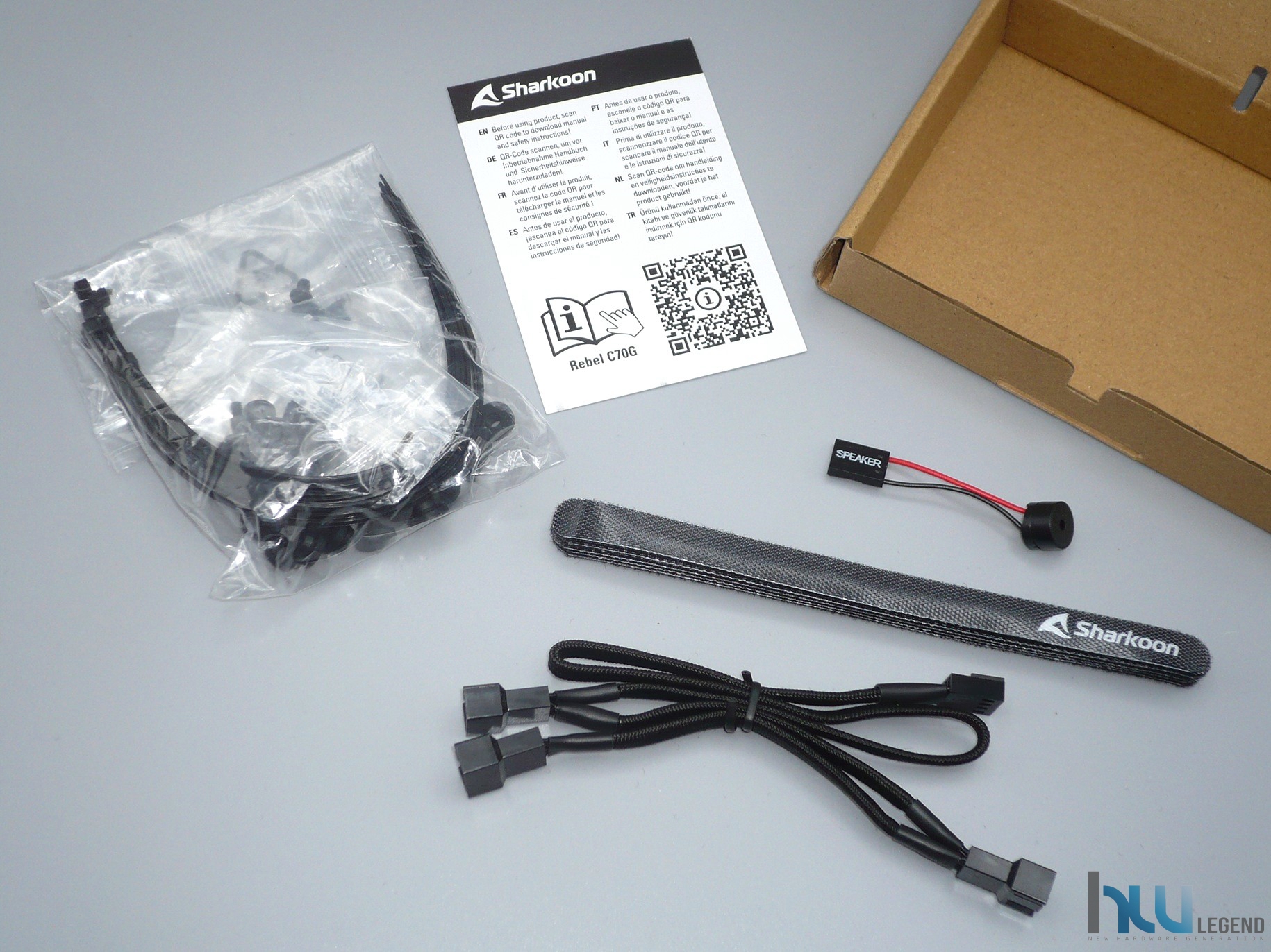 Il bundle fornito in dotazione, ben racchiuso all’interno di una piccola confezione di cartone, risulta abbastanza completo, includendo un cavo 4-Pin PWM a Y per il collegamento delle ventole, vari tipi di viti per l’installazione dell’hardware, un utile buzzer per le schede madri che ne fossero sprovviste, oltre a fascette monouso e in velcro per una gestione ordinata dei cavi.