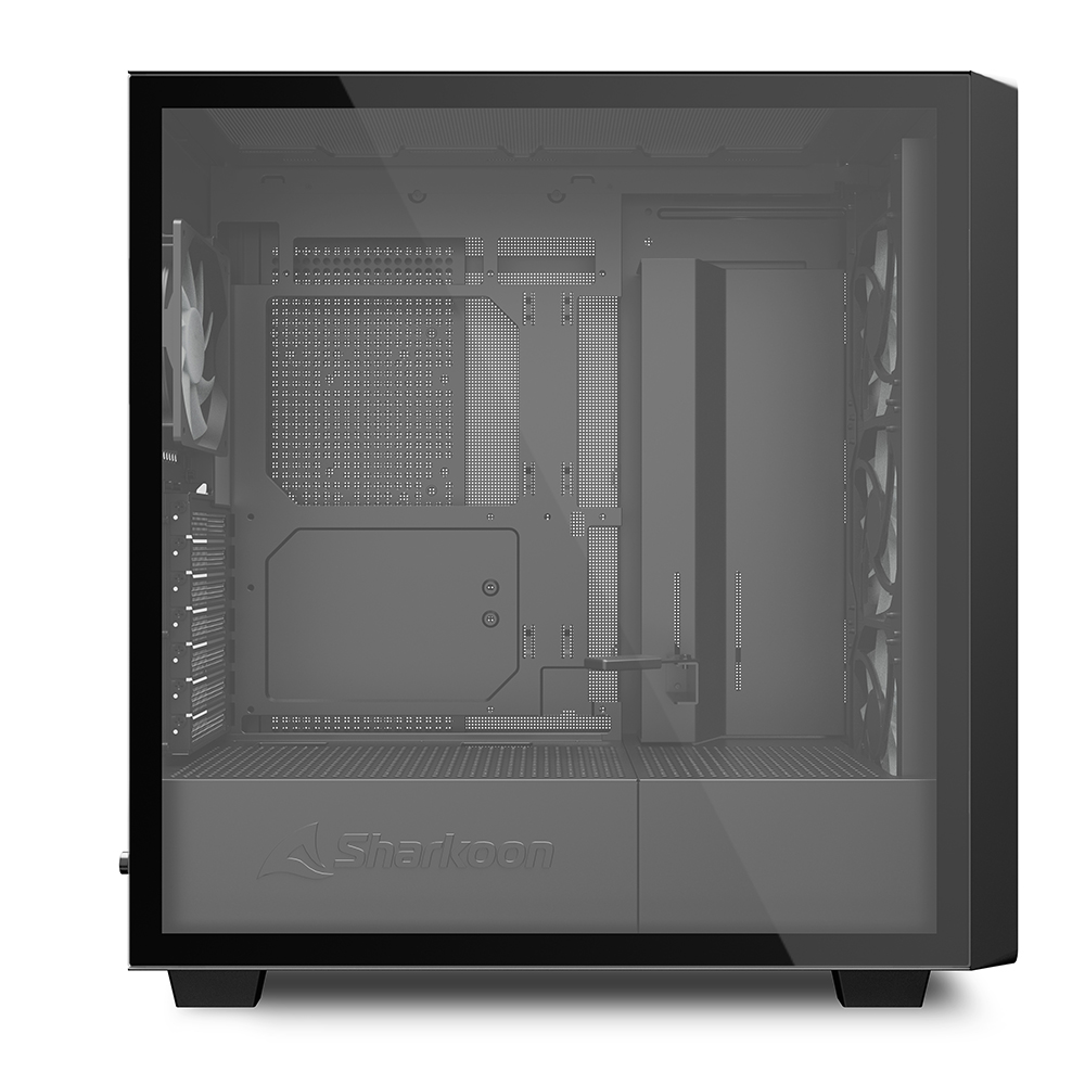Sharkoon ha creato un prodotto dal design sobrio e moderno, caratterizzato da innovazione e stile. La qualità complessiva è molto buona, e lo spazio interno è adeguato al montaggio dei vari componenti, nonostante le dimensioni relativamente compatte. Per rimuovere i due pannelli laterali, dei quali uno realizzato in vetro temperato, basterà semplicemente sfruttare il pratico sistema di sgancio rapido previsto.