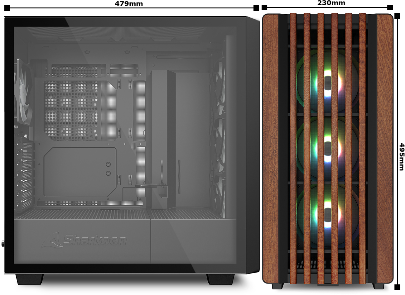 Con un design che coniuga l’eleganza del legno con l’aggressività del vetro temperato, il Mid-Tower REBEL C70G RGB di Sharkoon si impone come un case dalla personalità unica. Il pannello frontale in legno, un tocco distintivo nel panorama dei cabinet da gaming, crea un contrasto affascinante con la finestra laterale in vetro temperato, mettendo in mostra la potenza e la bellezza della componentistica interna.