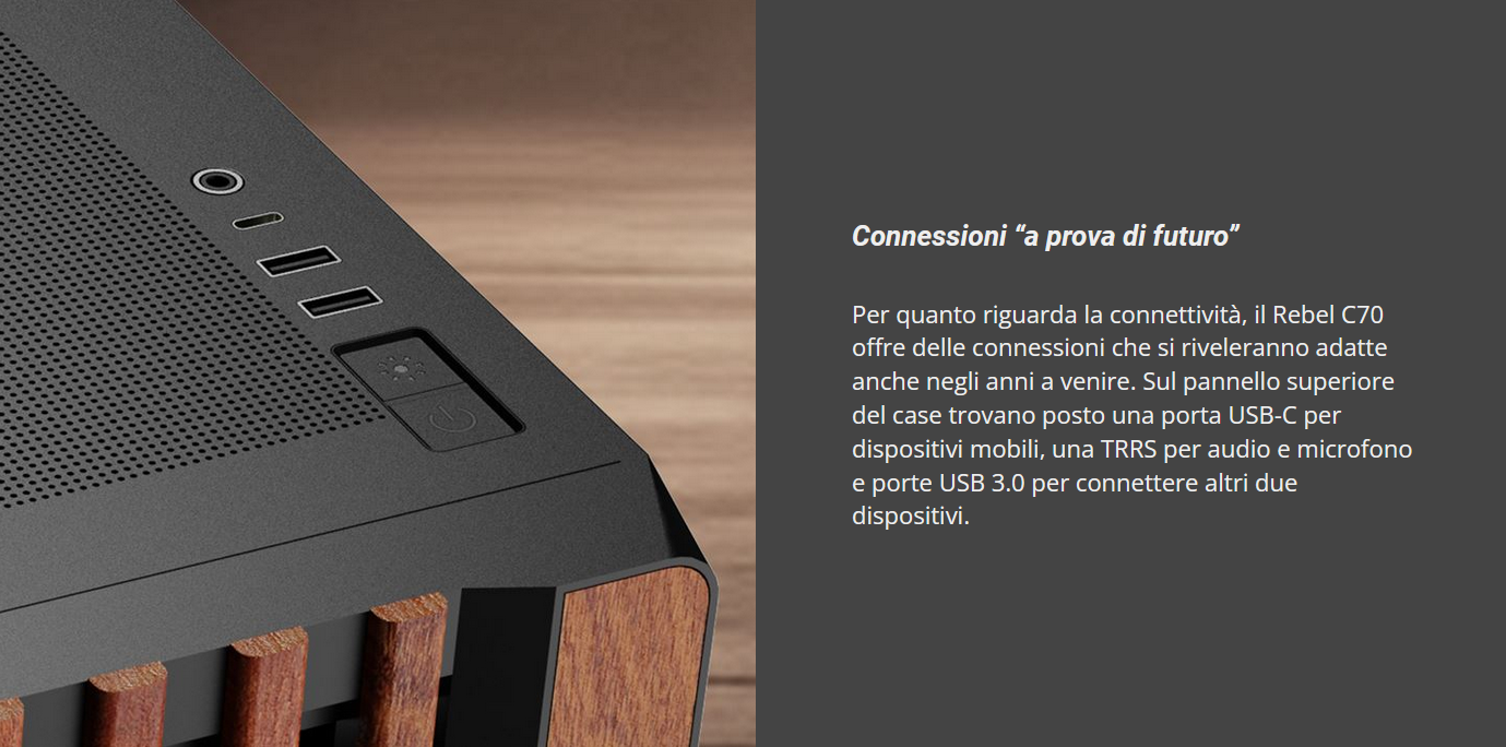 Dopo questa prima analisi della parte esterna del nuovo REBEL C70G RGB Black, è evidente che il produttore tedesco ha dedicato grande attenzione a ogni dettaglio durante la progettazione, raggiungendo un’invidiabile qualità costruttiva, soprattutto considerando la fascia di appartenenza di questo chassis.