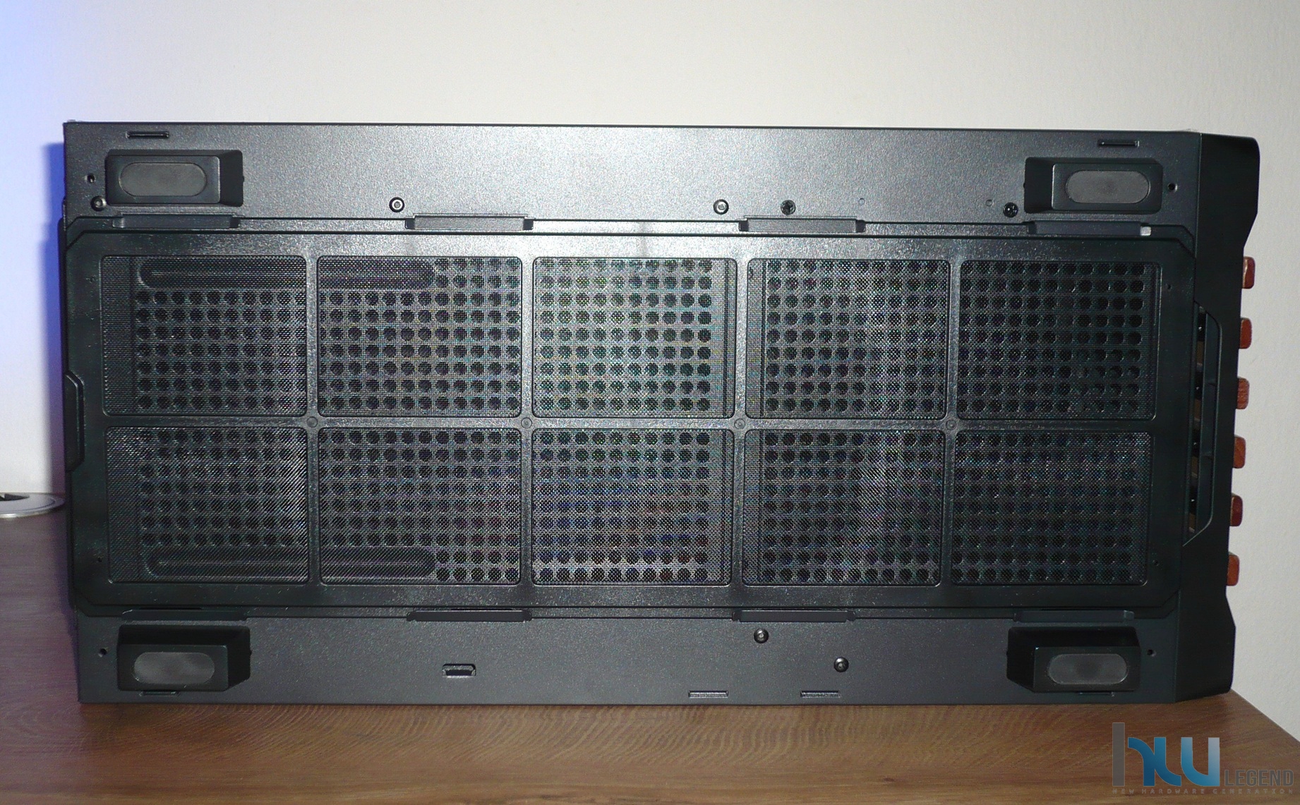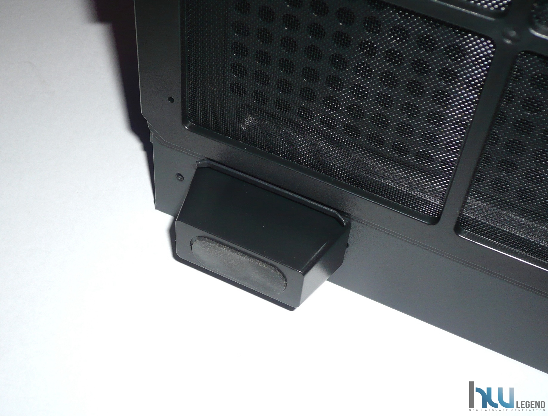 Lo chassis viene mantenuto sollevato dal piano di appoggio per mezzo di quattro piedini, provvisti di gommatura e opportunamente avvitati al telaio. L’aver previsto un rialzo di poco più di due centimetri rispetto al piano di appoggio assicura che anche l’alimentatore riesca a pescare sufficiente aria dall’esterno, evitandone così il surriscaldamento. Come già osservato in precedenza, è presente un pratico filtro antipolvere, facilmente rimovibile durante la manutenzione, che impedisce l’accumulo di polvere all’interno della PSU e del cabinet.