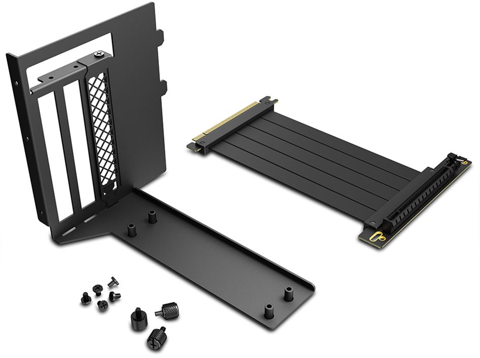Per la stessa finalità, ed allo scopo di andare incontro anche a tutti coloro che prediligono un’installazione tradizionale orizzontale della scheda grafica, il produttore ha previsto un pratico supporto regolabile dedicato, opportunamente gommato al fine di evitare qualsiasi potenziale danno al dissipatore.
