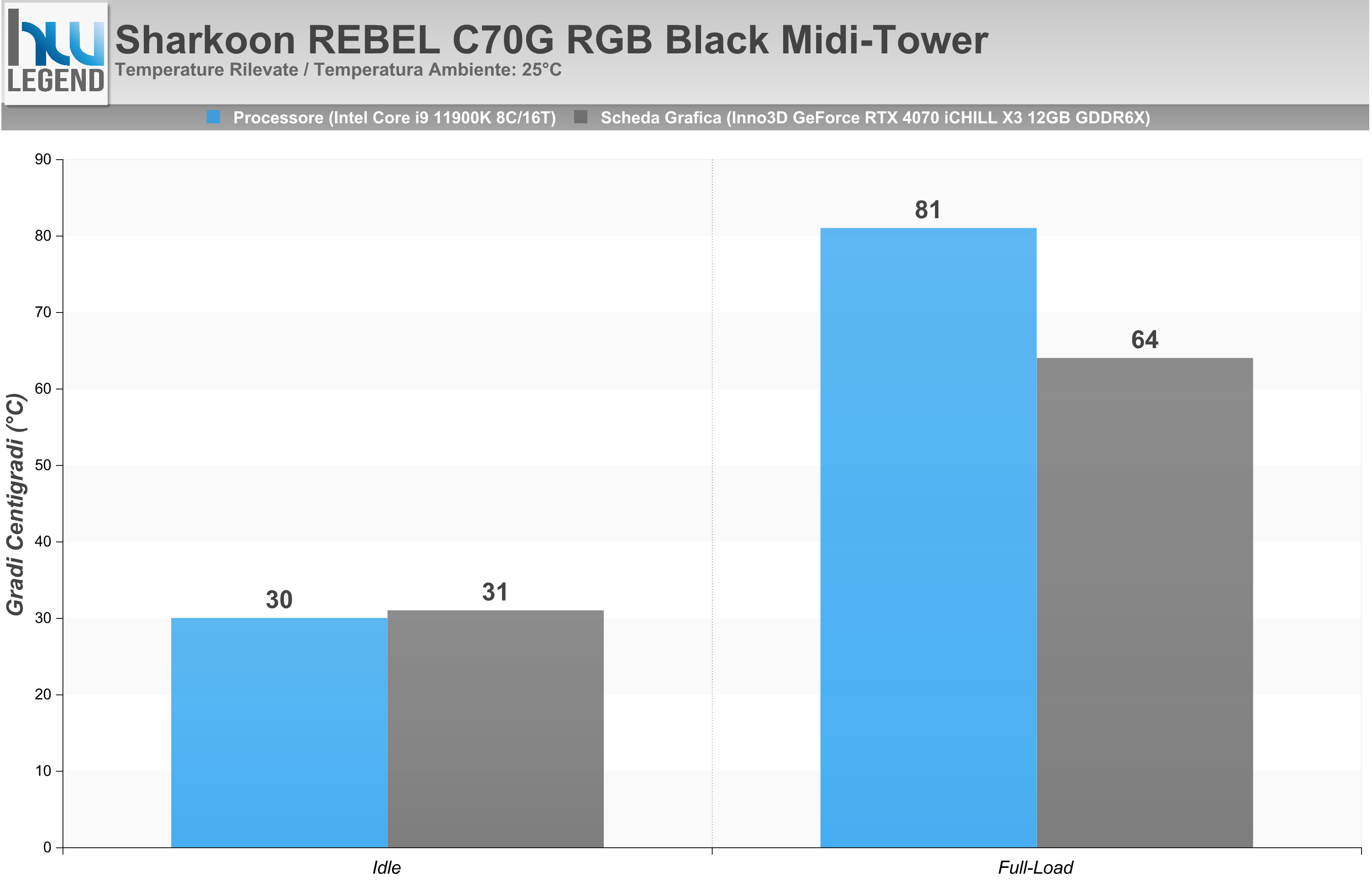 Sharkoon REBEL C70G RGB Black Midi-Tower – Temperature rilevate