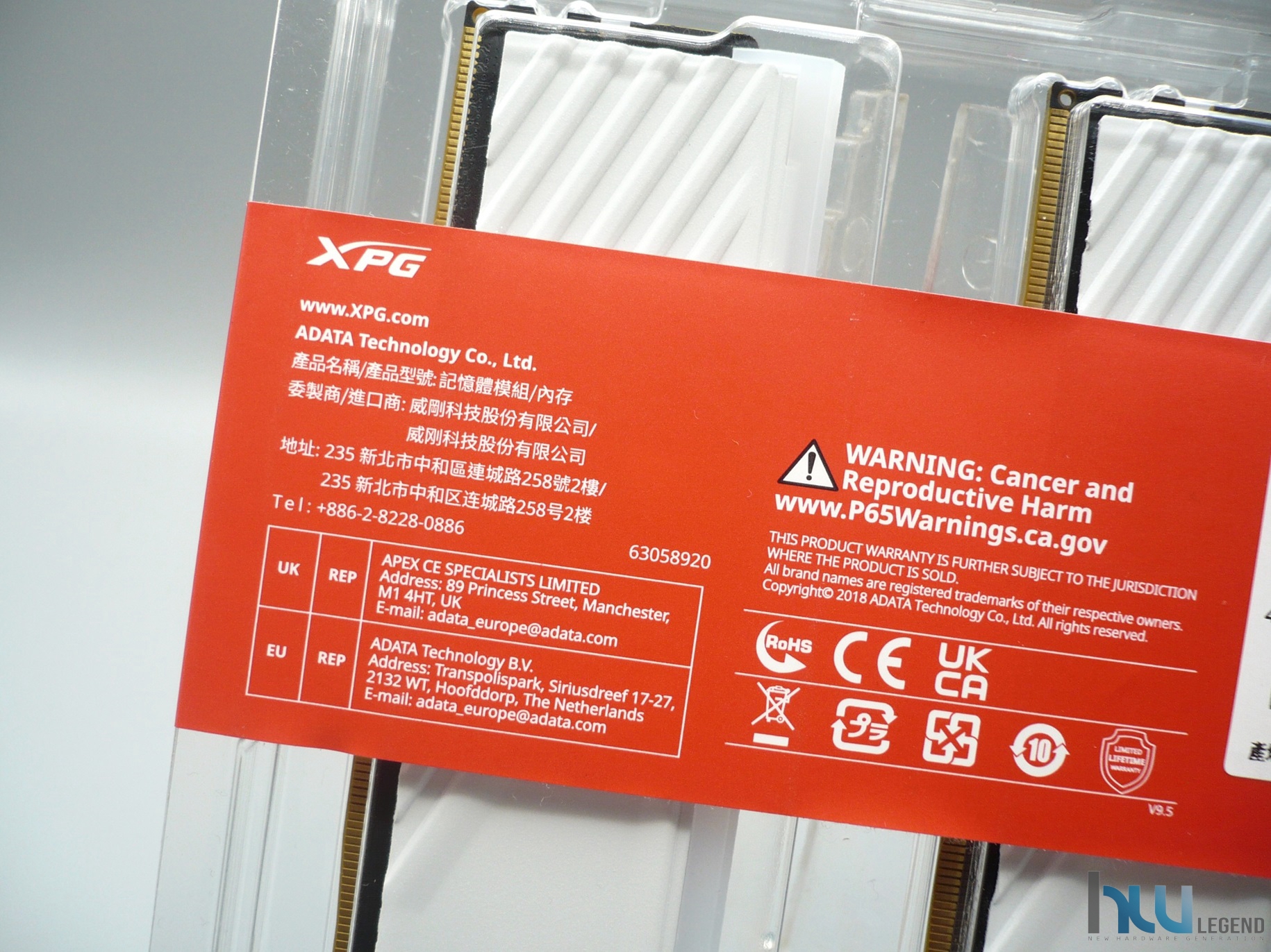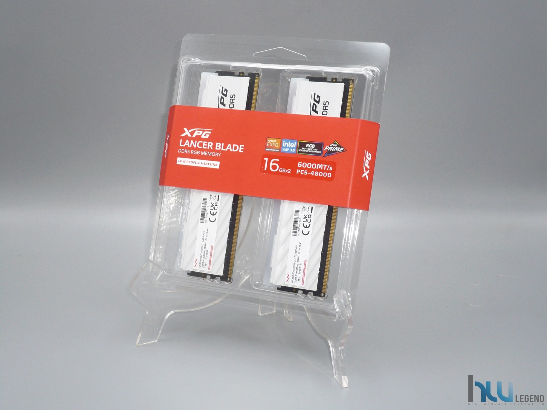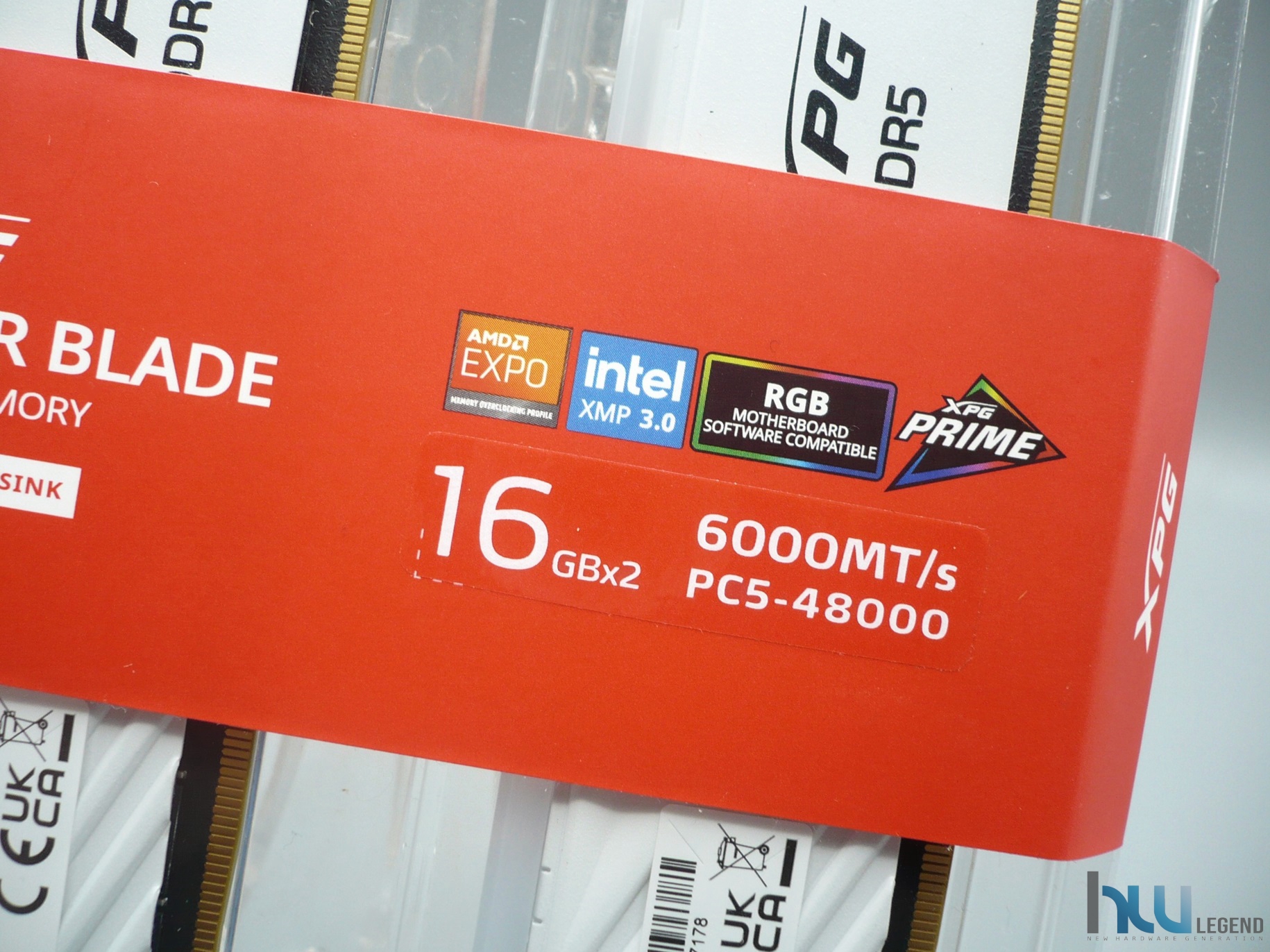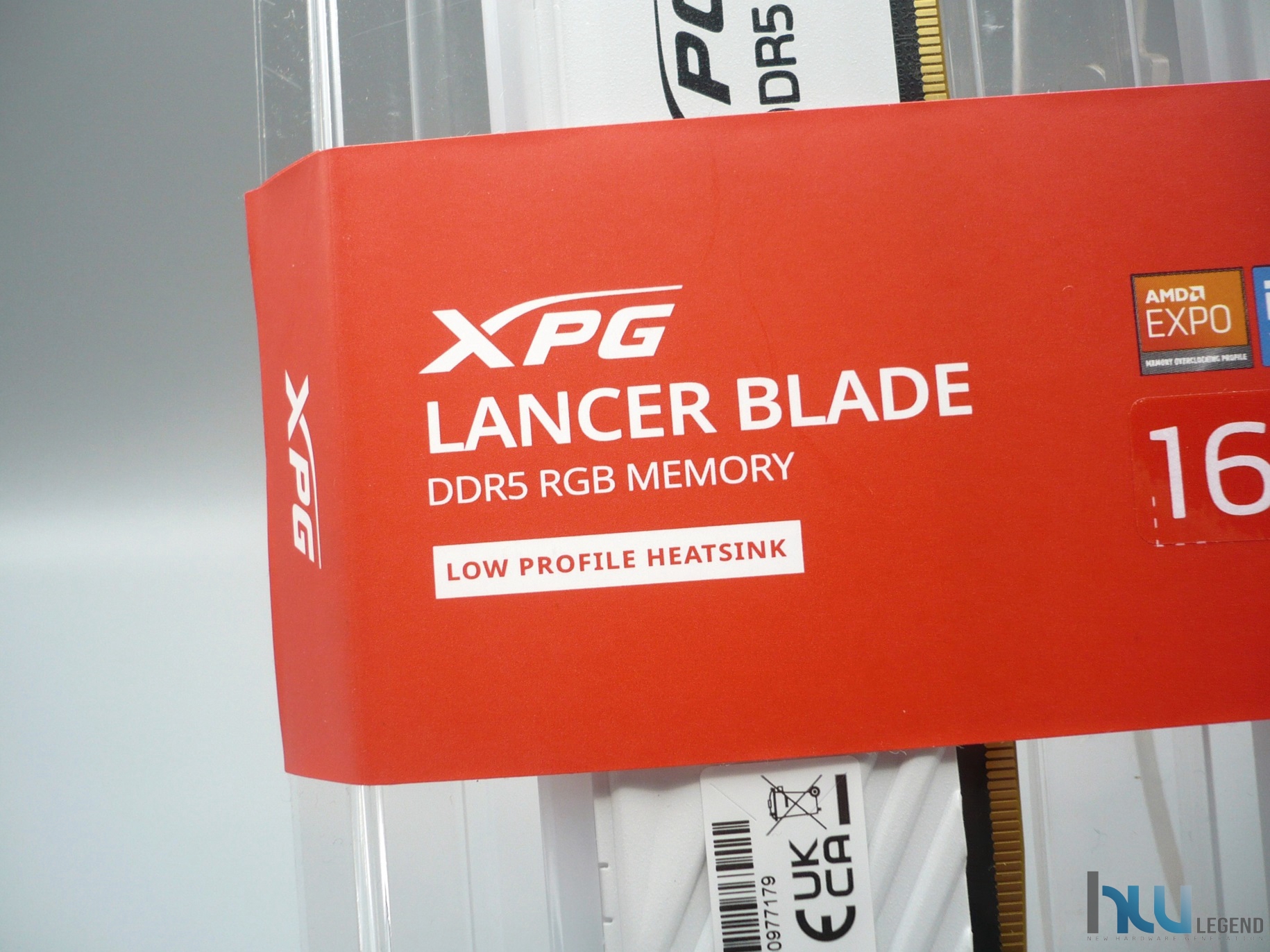 Grazie alla sua totale trasparenza sarà possibile visualizzare immediatamente l’aspetto estetico dei moduli di memoria, comodamente adagiati all’interno. Per garantire una perfetta chiusura del blister, è presente una generosa banda adesiva rossa, sulla quale sono riportate varie informazioni utili, tra cui il marchio aziendale, la nomenclatura della serie di appartenenza delle memorie, in questo caso la famiglia di prodotti XPG Lancer Blade RGB, la velocità massima (6.000MT/s), la capacità complessiva e la configurazione del KIT, in questo caso di tipo Dual-Channel a due banchi (2x16GB). Non mancano dettagli circa la presenza di un sistema di illuminazione di tipo RGB completamente personalizzabile, compatibile con tutte le principali tecnologie del settore (AURA Sync, MysticLight, Polychrome Sync, RGB Fusion etc.), grazie alle quali sarà possibile mettere mano al colore e all’effetto dei singoli LED integrati. Tra i vari loghi collocati nella parte superiore destra, possiamo osservare quelli che attestano la piena compatibilità del KIT sia con la tecnologia Intel XMP 3.0 che con la corrispettiva EXPO (EXtended Profiles for Overclocking) di AMD, a garanzia del miglior supporto possibile con le principali piattaforme mainstream sul mercato.