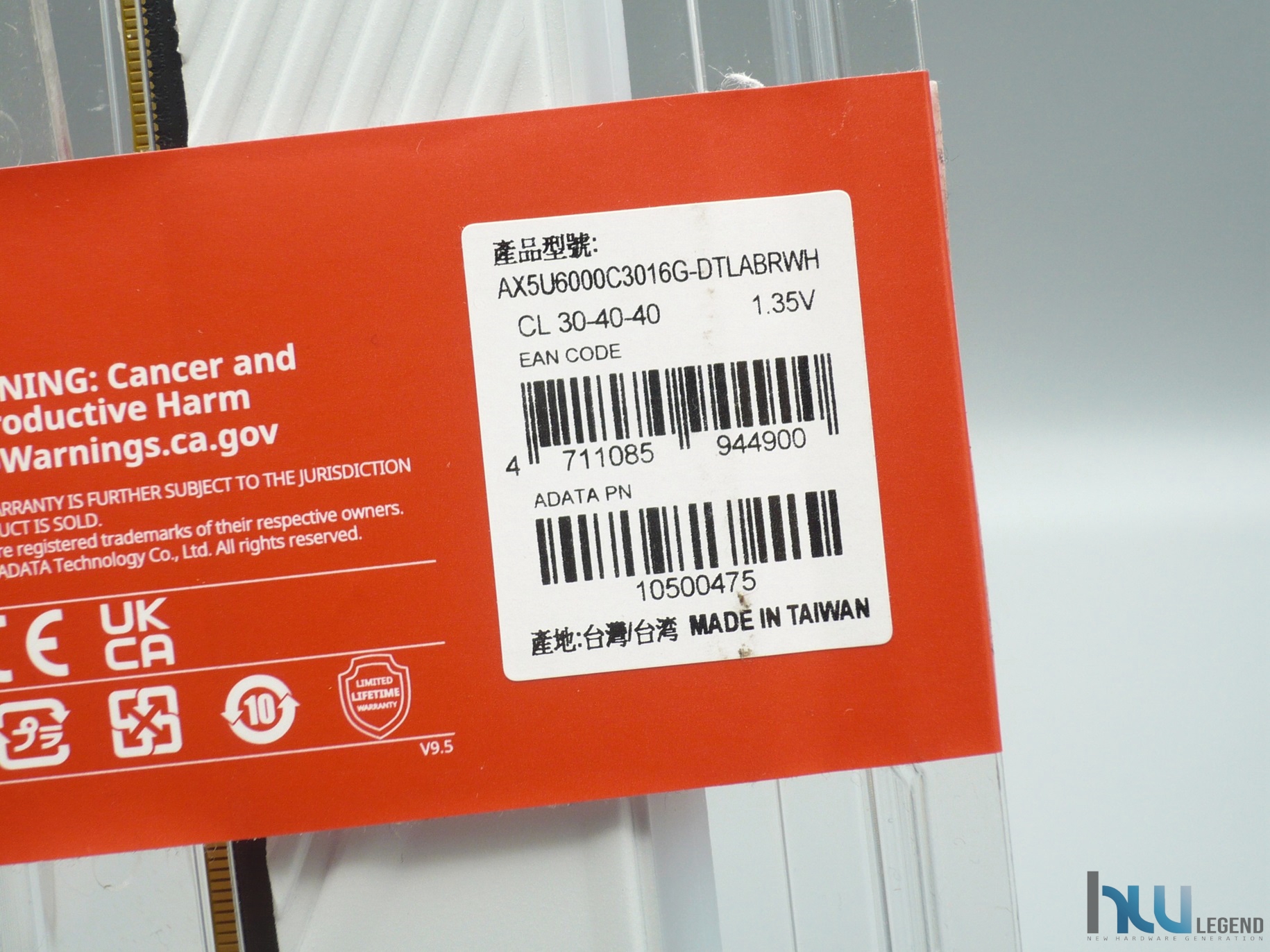 Nella parte posteriore della confezione è collocata una piccola targhetta identificativa del prodotto, riportante i vari numeri di serie, le latenze (CL30-40-40-76) e la tensione di alimentazione massima prevista dai moduli (1.35v). Sempre su questo lato della confezione possiamo trovare i principali loghi delle certificazioni ottenute, oltre che tutte le varie informazioni di contatto aziendali.