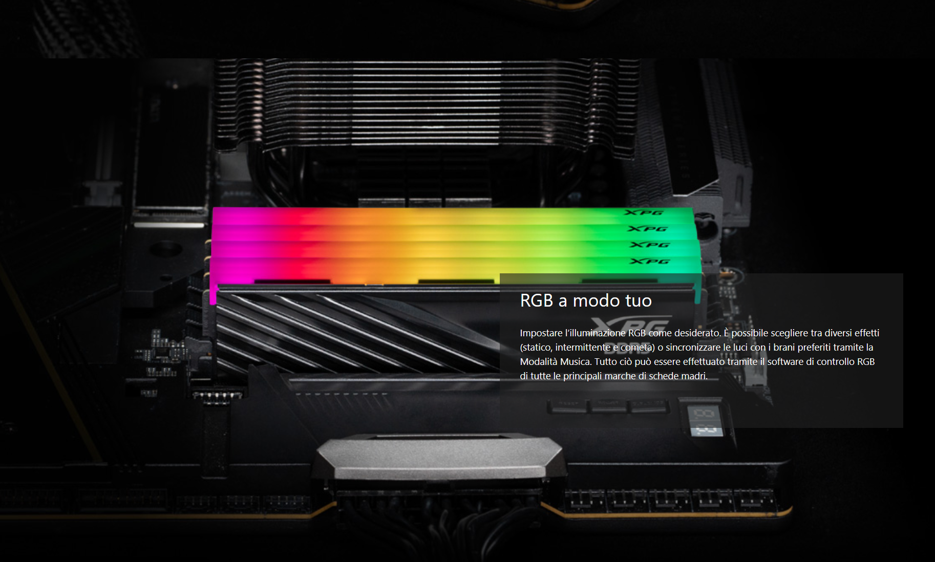 Ricordiamo che ADATA assicura la piena compatibilità con le più diffuse tecnologie di illuminazione del settore. Non vi saranno problemi, quindi, a gestire e sincronizzare i singoli LED facendo uso dei vari software di gestione messi a disposizione dal produttore della propria scheda madre.