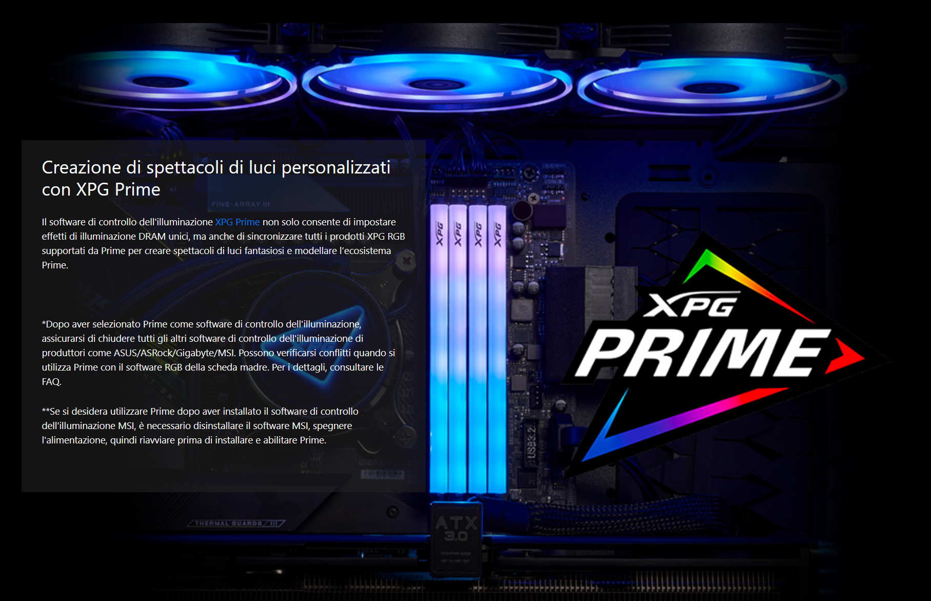 Su ogni singolo modulo, infatti, troviamo una batteria di LED integrati, singolarmente gestibili da parte dell’utente tramite software di controllo proprietario, denominato XPG PRIME.
