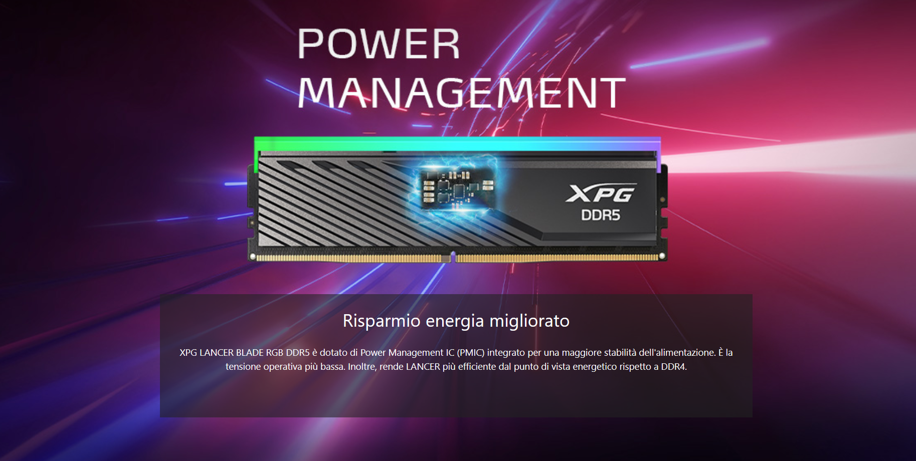 Con la famiglia di prodotti XPG Lancer Blade RGB l’azienda si rivolge a tutti quegli utenti alla ricerca di una soluzione prestante ed estremamente affidabile. L’intera gamma è progettata specificamente per garantire prestazioni ottimali per giocatori, creatori di contenuti e appassionati di overclocking sulle più recenti piattaforme mainstream sul mercato.