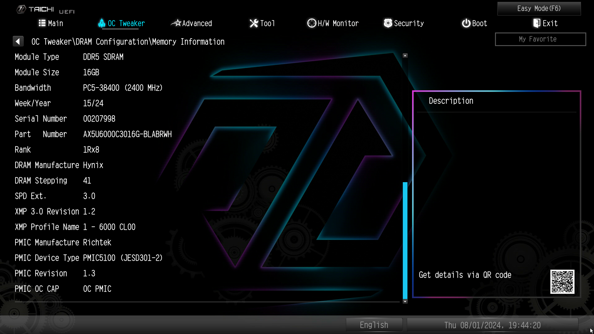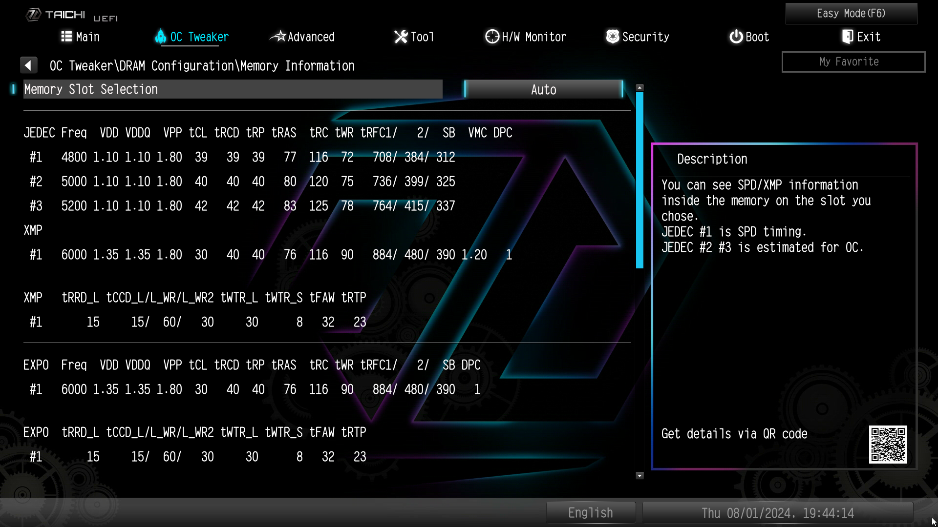 Di seguito vi mostriamo i profili delle memorie tramite il BIOS della scheda madre ASRock Z790 Taichi Lite usata per la nostra recensione: