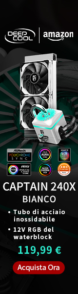 Durante questa meravigliosa giornata di primavera, abbiamo il piacere di potervi parlare del dissipatore di calore ad aria della DeepCool. Per la precisione stiamo parlando del modello Gammaxx GT BK, contraddistinto da una copertura di metallo con RGB e dalla presenza di una ventola da 120 mm sempre RGB. Eccellente risulta la presenza in bundle di un controller RGB a 12V, in grado di sfruttare a pieno l’illuminazione del cooler, anche su schede madri prive di controller integrato. Le dimensioni e la particolare forma a torre del dissipatore lo rendono pienamente compatibile anche con le RAM che presentano dissipatori molto generosi. La ventola è in grado di lavorare ad un regime di rotazione che varia tra i 500 e i 1500 RPM, creando un flusso d’aria di circa 56.5 CFM ad una rumorosità massima di circa 26 dBa. La ventola come anticipato in precedenza dispone di una illuminazione RGB a 12V totalmente gestibile tramite controller integrato. La parte superiore del dissipatore presenta una attraente zona RGB in grado di diffondere in maniera uniforma una spettacolare illuminazione. Le quattro heatpipe presenti sul dissipatore, di generose dimensioni, sono direttamente a contatto con la CPU al fine di ottimizzare al massimo lo scambio termico e garantire di conseguenza un veloce smaltimento del calore. Il DeepCool Gammaxx GT BK è disponibile su Amazon Italia al prezzo di 39,99 € Non posiamo che augurarvi una buona visione del nostro video!